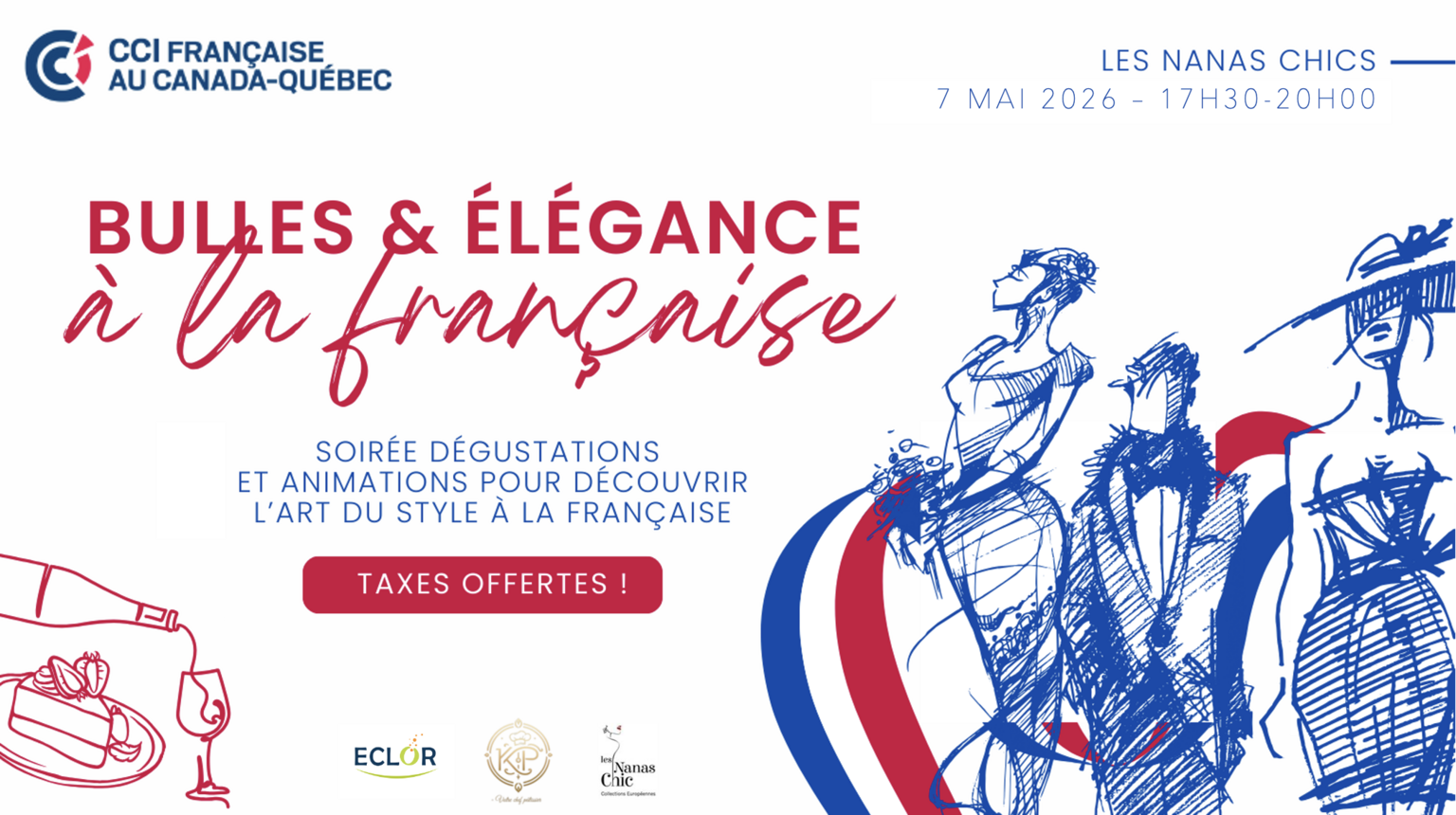 Prenez part à une soirée chic et conviviale où l’élégance de la mode française rencontre le raffinement des bulles. L’art du style à la française, c’est ce subtil équilibre entre raffinement et audace! L'occasion idéale pour réseauter, découvrir des collections exclusives et célébrer l’art de vivre à la française.